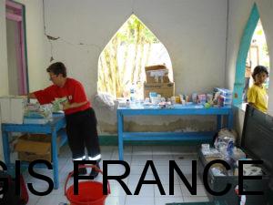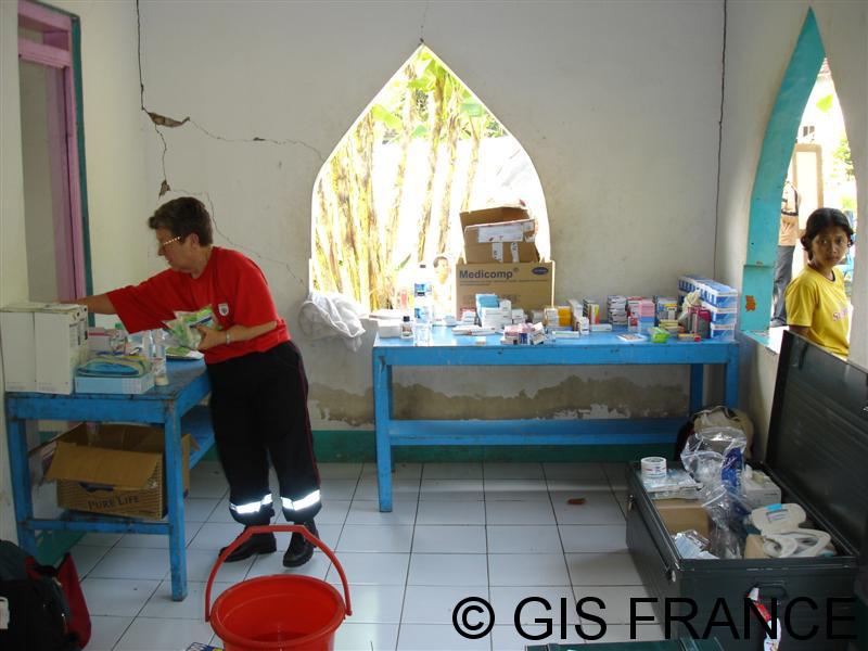 Dès leur arrivée, les équipes installent un dispensaire dans la région de Bantul, au plus près des zones sinistrées. Malgré les répliques sismiques régulières et l’activité du volcan Merapi (émanations de gaz et projections de cendres), les consultations s’enchaînent sans interruption.